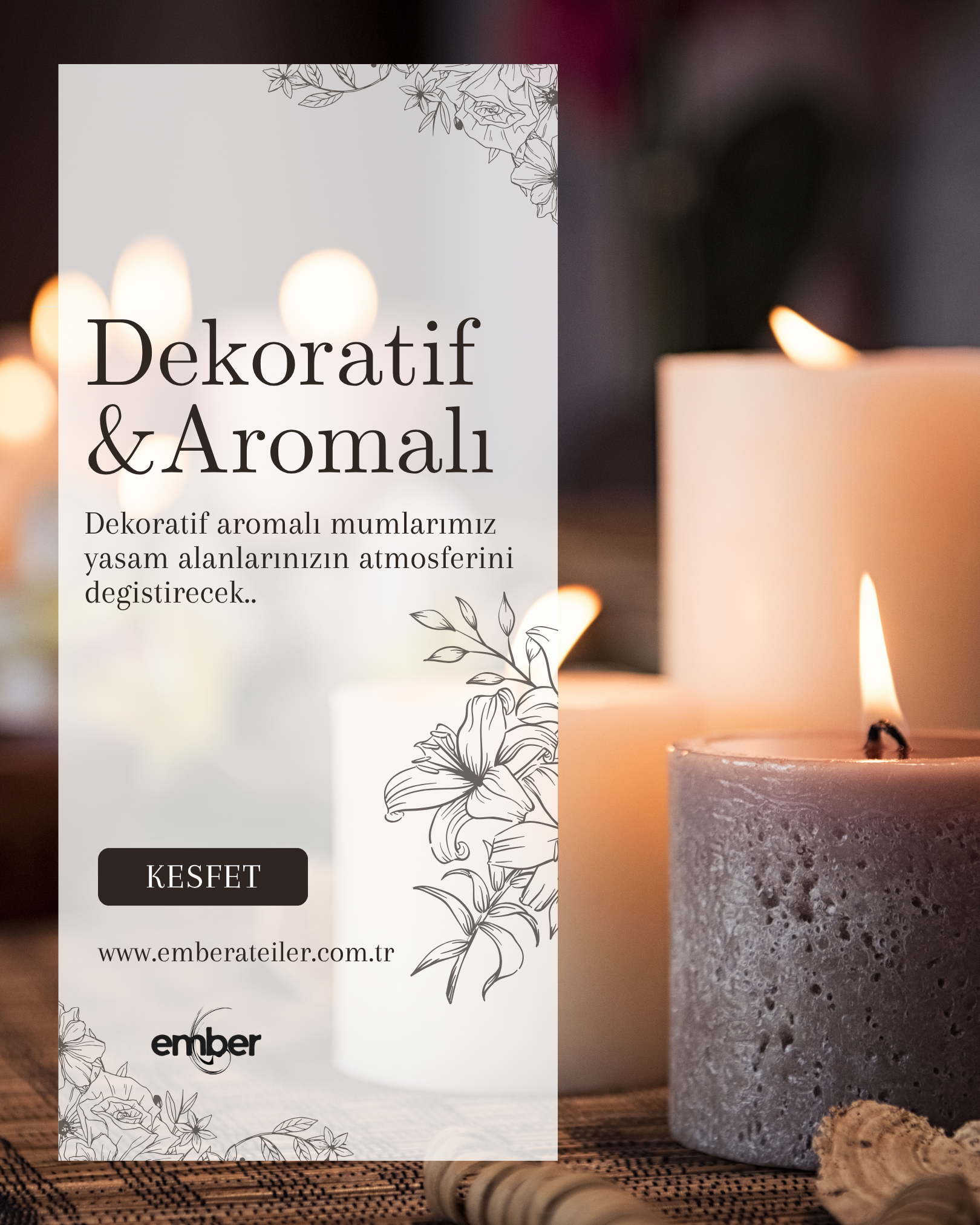 EMBER dekoratif kokulu mumlarla evinizde sıcaklığı ve zarafeti hissedin. Özenle seçilmiş doğal esanslar ve estetik tasarımıyla her anınıza özel bir atmosfer katın.